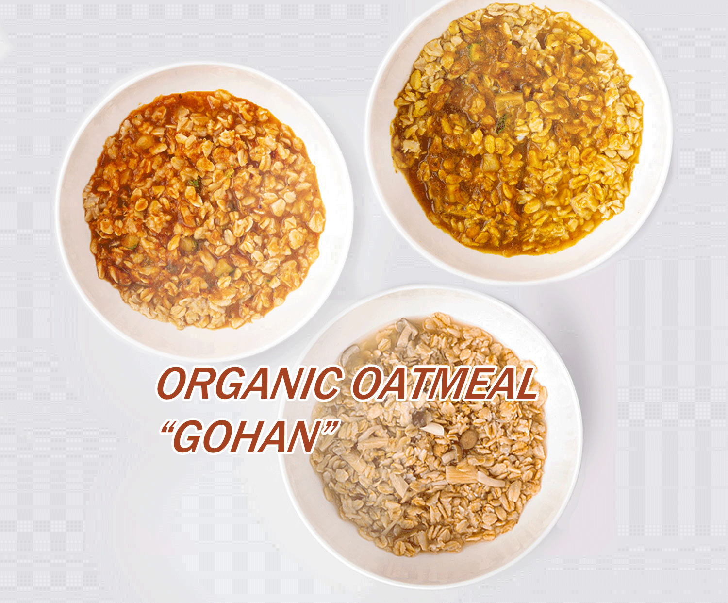 をコンセプトにしたスロースローのオートミールごはんは、小麦粉・卵・乳製品を一切使わず、塩分と調味料は最小限に抑えました。まるでご飯みたいに食べられて日本人にとっても嬉しいインスタントです。